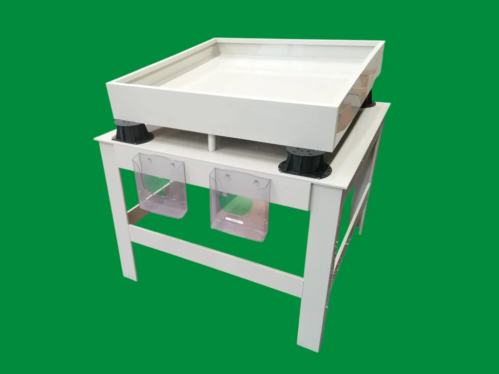 Sedum tálca bemutató asztal, amely 4 db tálca tárolására alkalmas